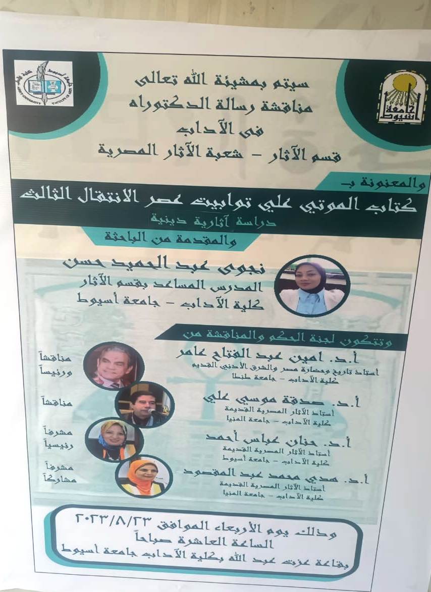 Discussion session for a doctoral thesis in literature by the researcher Iman Mustafa Mohamed