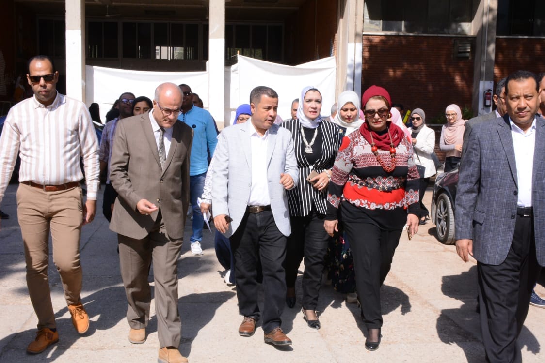 Her Excellency was received by Prof. Dr. Magdy Alwan, Dean of the Faculty of Arts, Prof. Dr. Hamed Mashhour, Vice Dean for Environmental Affairs and Community Service, Prof. Dr. Khaled Salama, Vice Dean for Education and Student Affairs, Prof. Dr. Muhammad Abu Rehab, Vice Dean for Graduate Studies and Research, Prof. Dr. Sameh Al-Banna, Head of the Department of Archeology, Prof. Dr. Noha Abdel Aziz, Head of the French Language Department, Ms. Sahar Mohamed, Secretary General of the Faculty, and a group of faculty members at the Faculty.