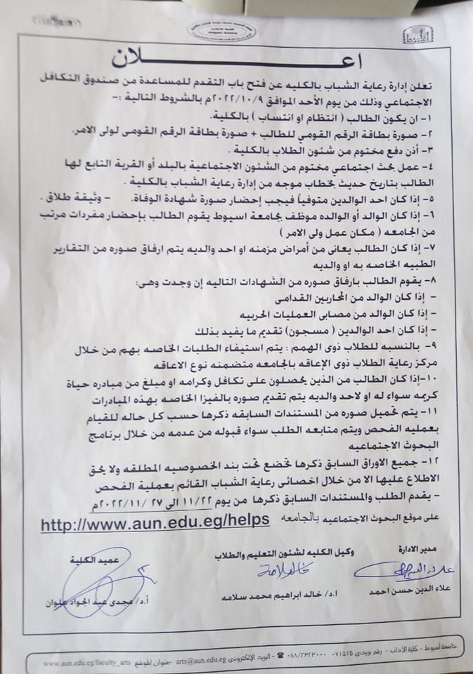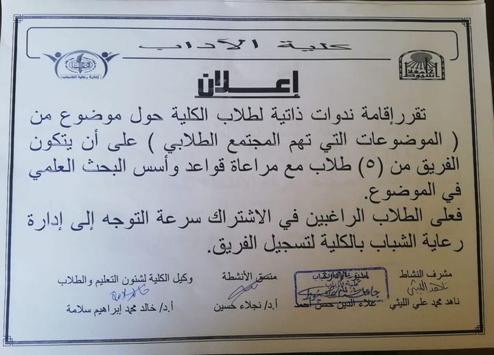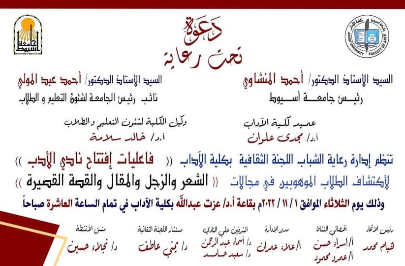 And that on Wednesday 2/11/2022 at 10 am in the hall of Dr. Ezzat Abdullah in the Faculty of Arts