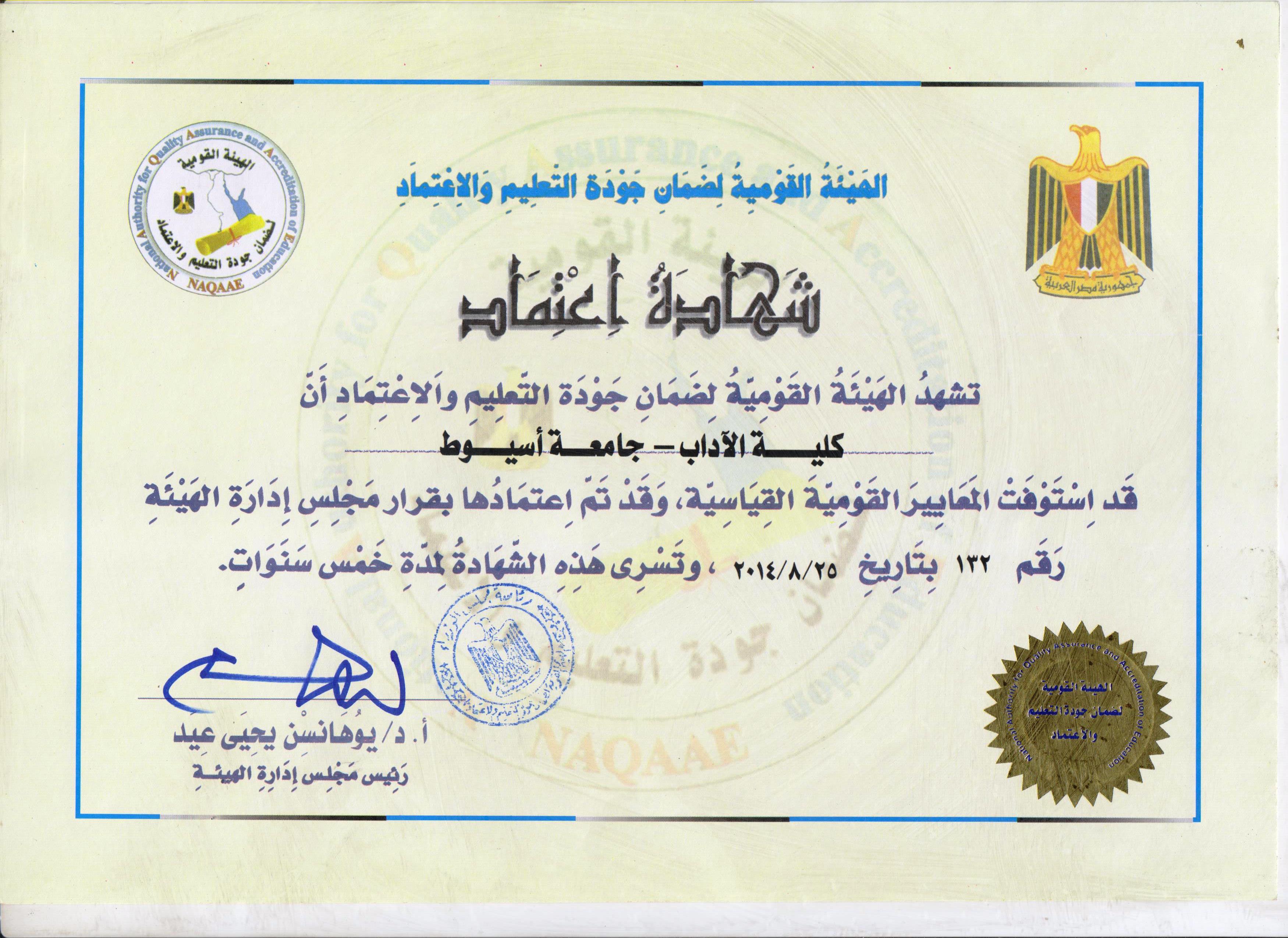 The National Authority to ensure the quality of education and accreditation honored the Faculty of Arts, Assiut University as the first Faculty of Arts sector get accreditation during the conference of the festive higher education sector Authority, which aims to strengthen the existing partnership between the National Authority to ensure the quality of education, accreditation, institutions Aala Education