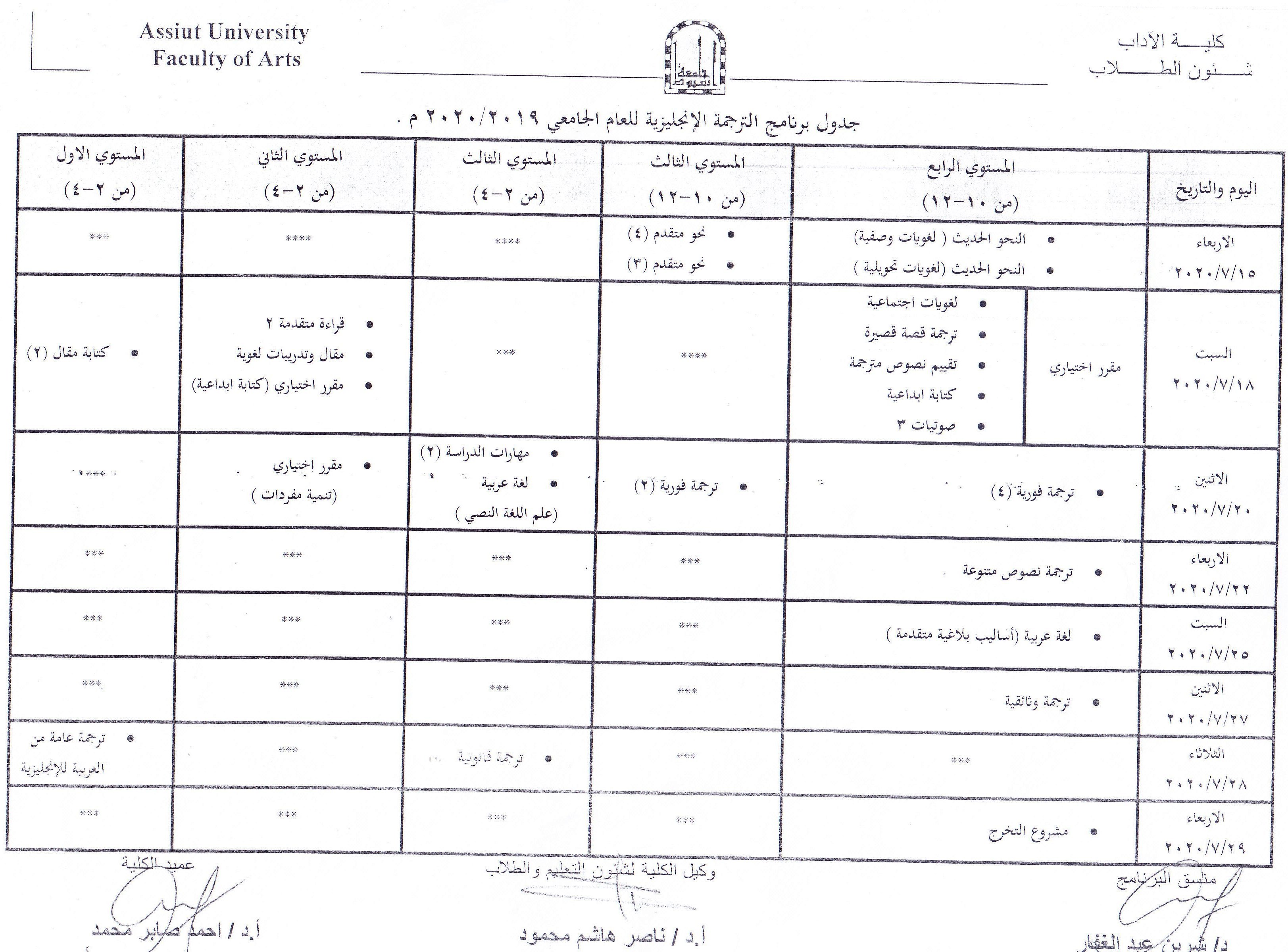Translation Program Exam Schedule