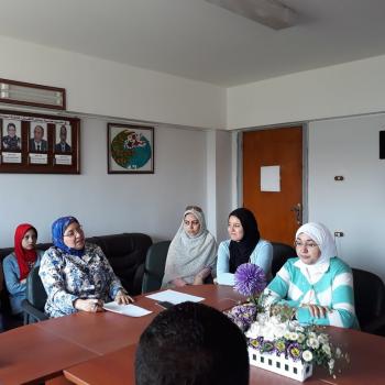Union of college students in a meeting with the Dean
