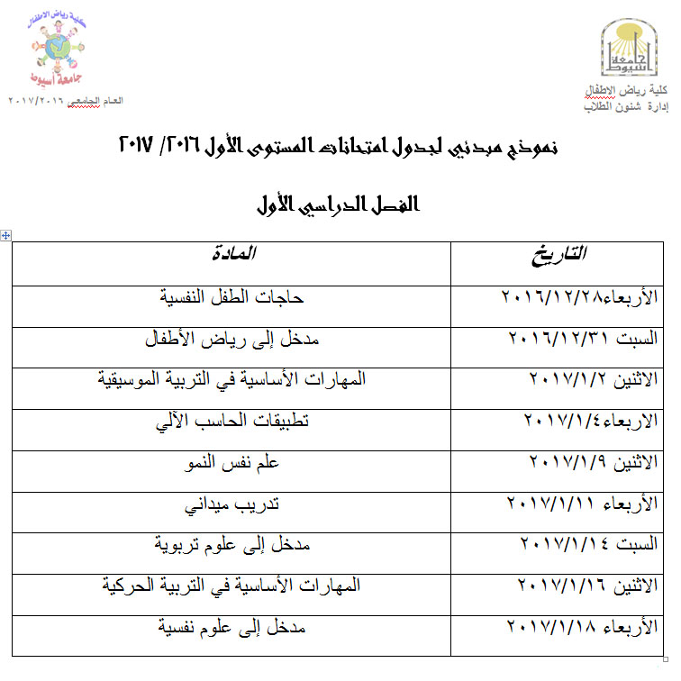 * تم مناقشة بعض الموضوعات المتعلقة بأعمال الإمتحانات و تم تحديد موعد بدء إختبارات الفصل الدراسي الأول ووضع الجدول المبدئي للإختبارات