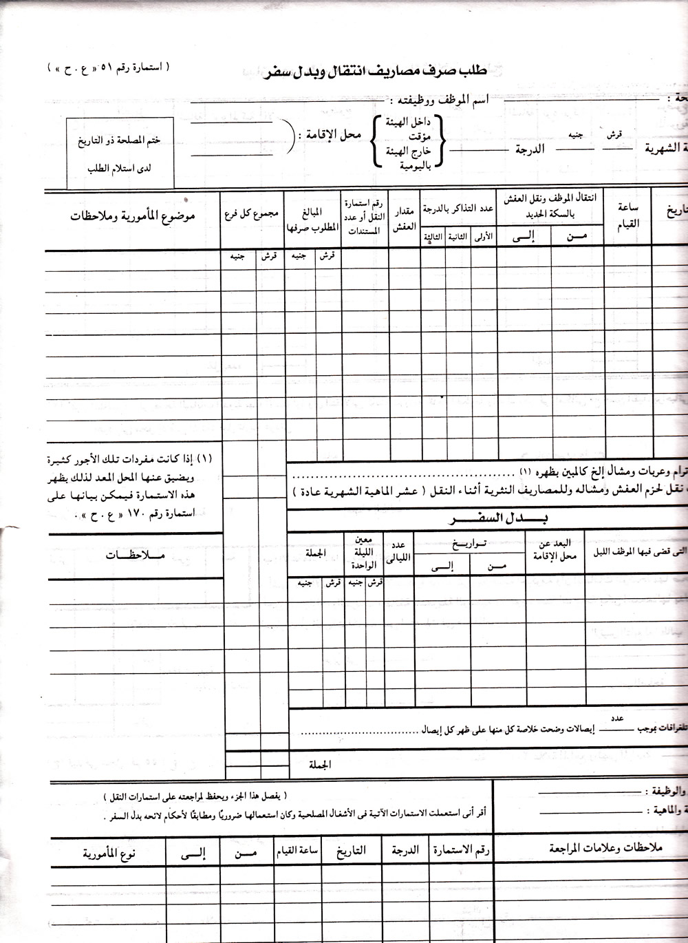 استمارة طلب صرف مصاريف أنتقال وبدل سفر.