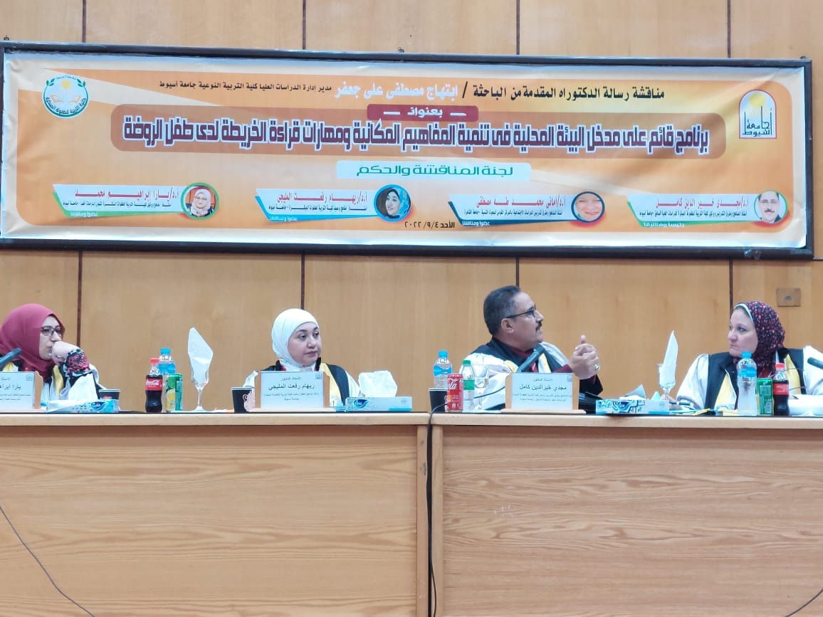 وذلك لمناقشة رسالة الدكتوراه المقدمة من الباحثة/ ابتهاج مصطفى علي جعفر ، بعنوان: برنامج قائم على مدخل البيئة المحلية في تنمية المفاهيم المكانية ومهارات قراءة الخريطة لدى طفل الروضة ![]()