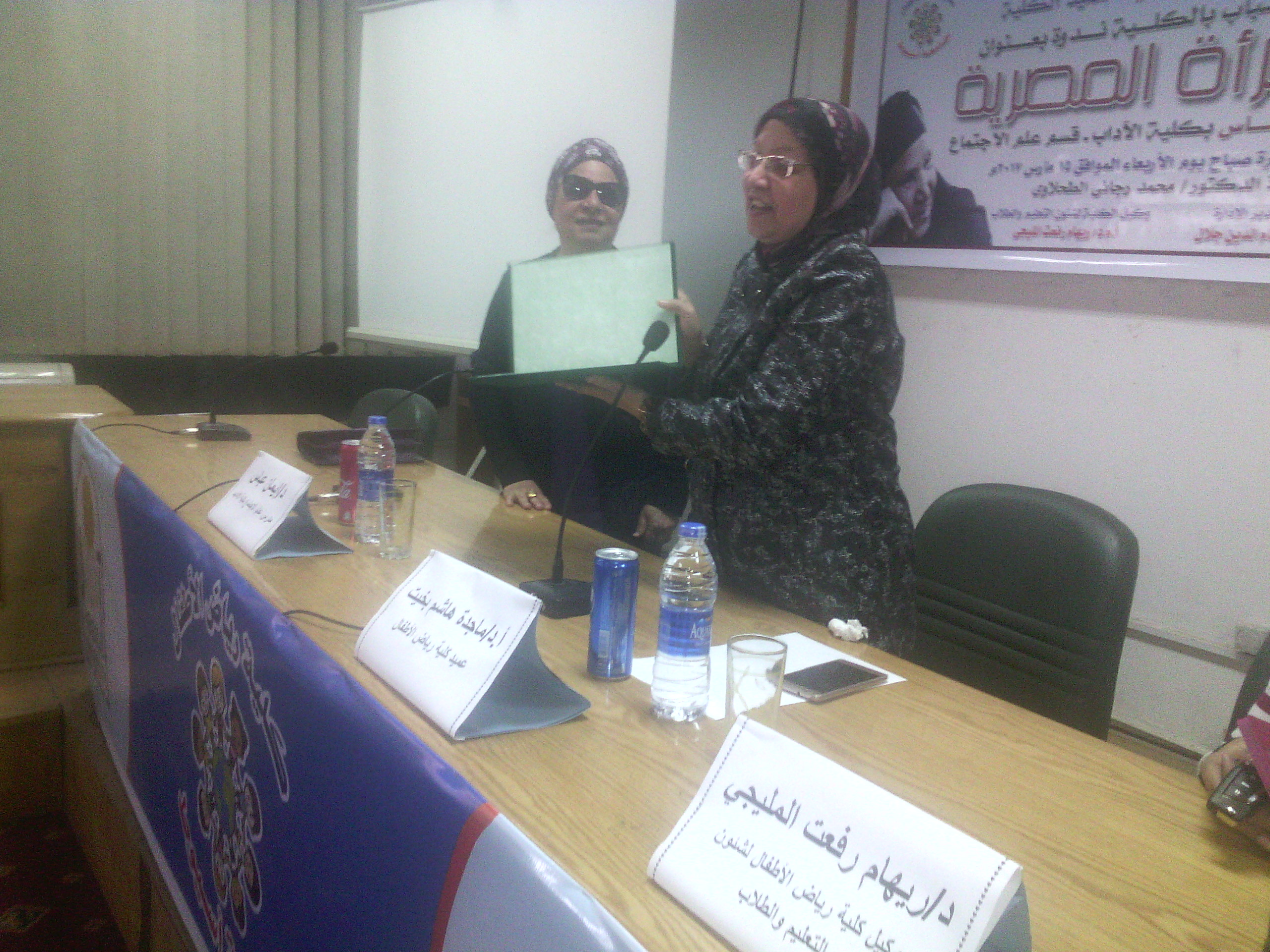 و فى نهاية الندوة قامت أ.د/ ماجدة هاشم باهداء شهادة تقدير للدكتورة ايمان عباس تقديراً لمجهوداتها.