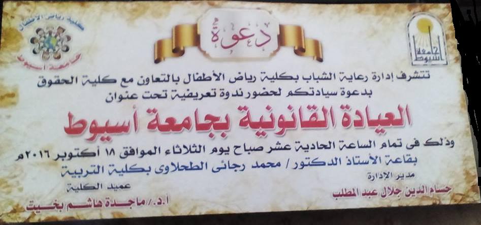 تتشرف رعاية الشباب بكلية رياض الأطفال بالتعاون مع كلية الحقوق بدعوة سيادتكم لحضور ندوة تحت عنوان