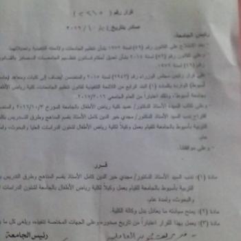 السيدة الفاضلة أ.د/ عميد الكلية تهنىء الباحثين الجد بالقيد