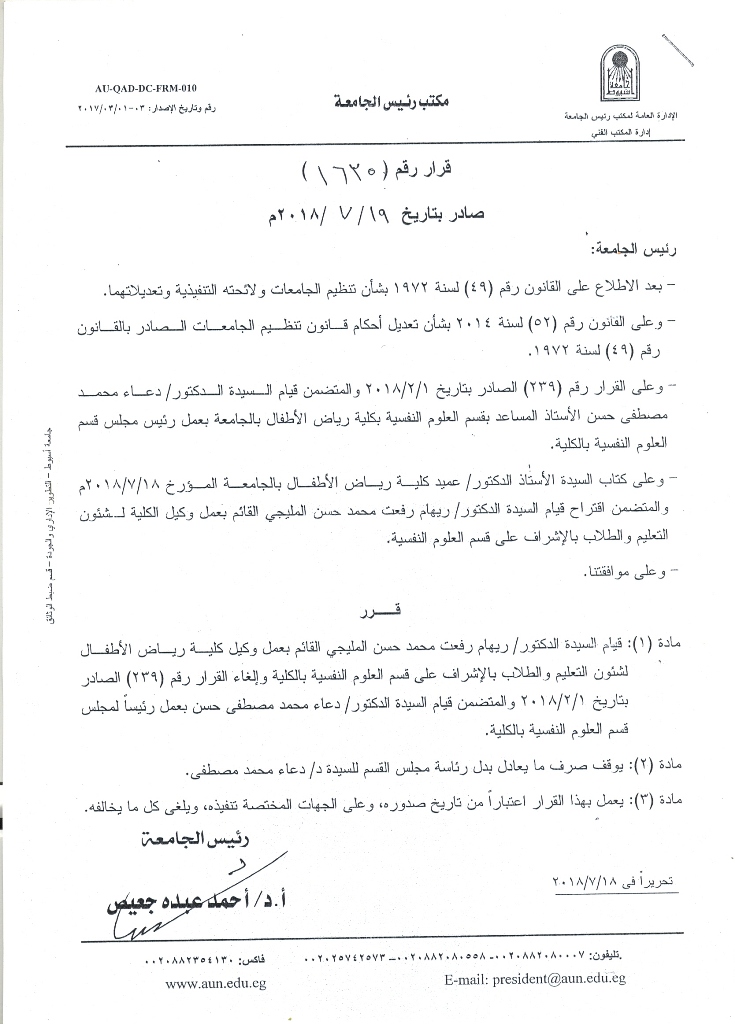والسيدة الدكتورة / منال محمود عبد الحميد المدرس بقسم العلوم التربوية بكلية رياض الاطفال جامعة اسيوط