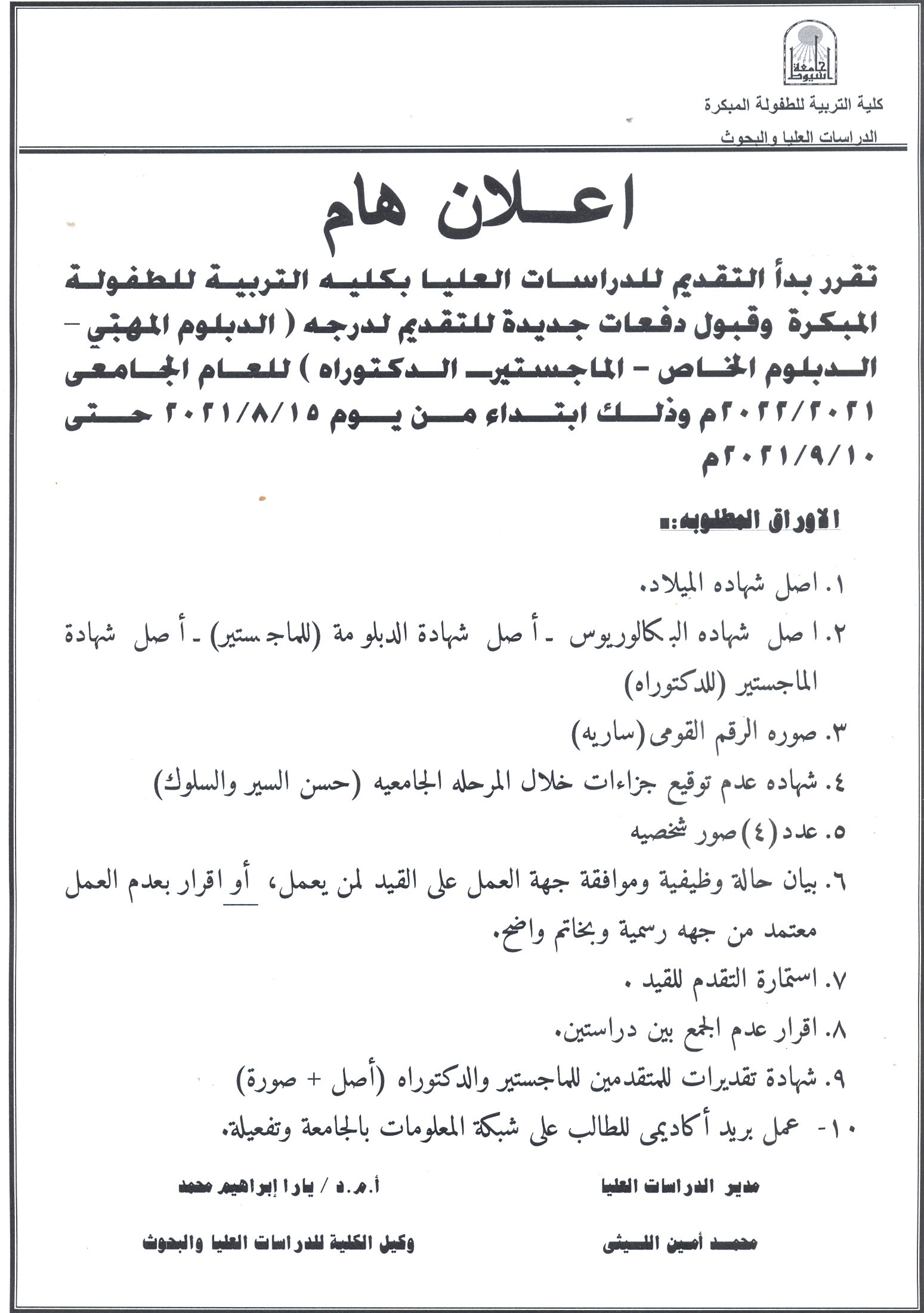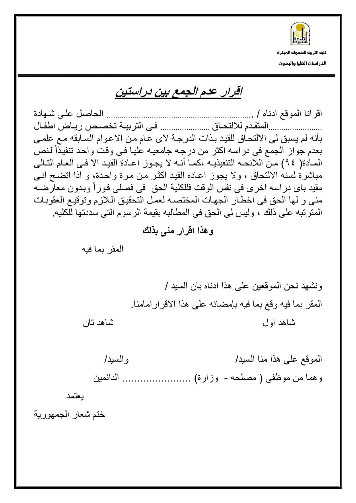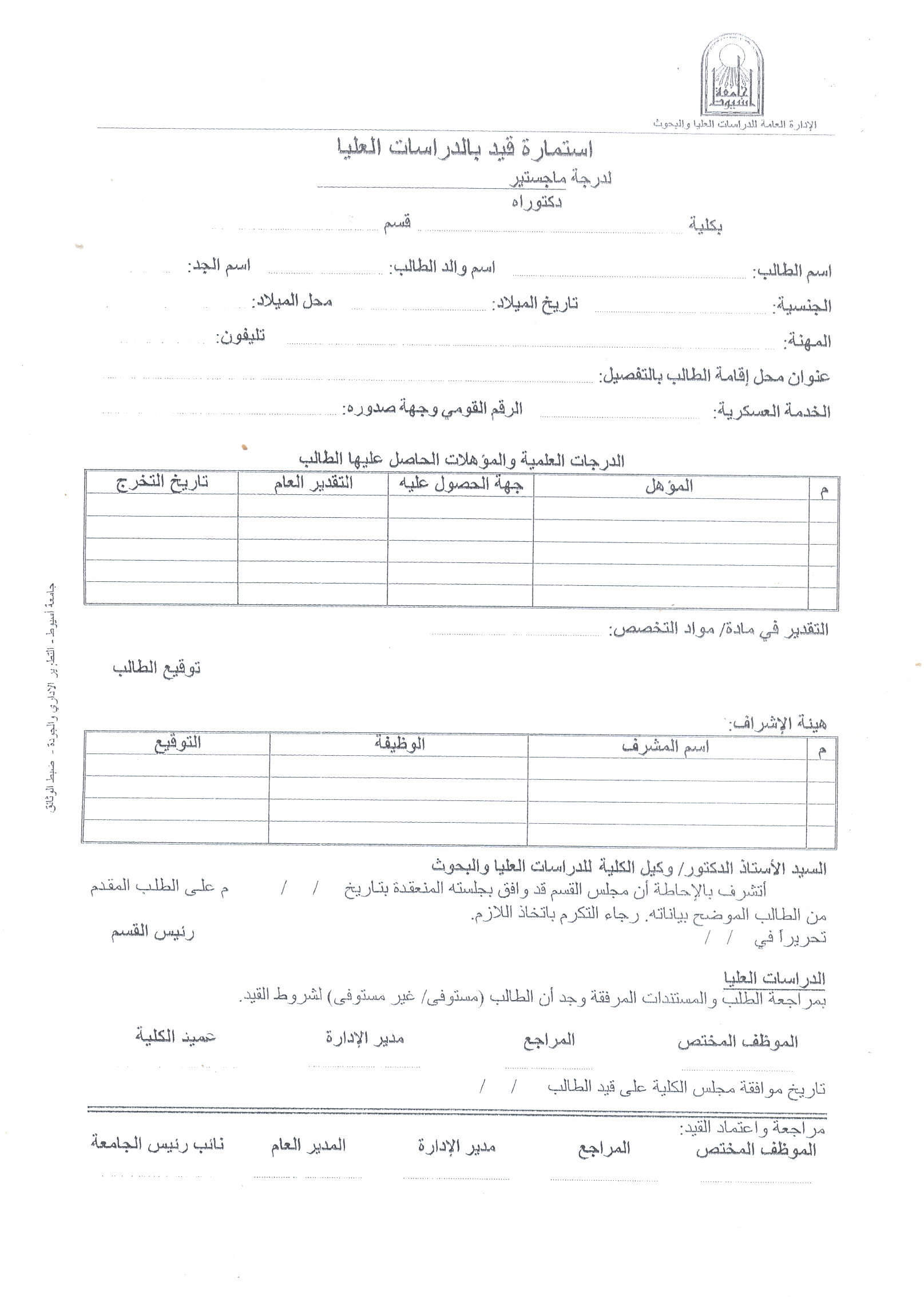 الاستمارات المطلوبة للتقديم للدراسات العليا