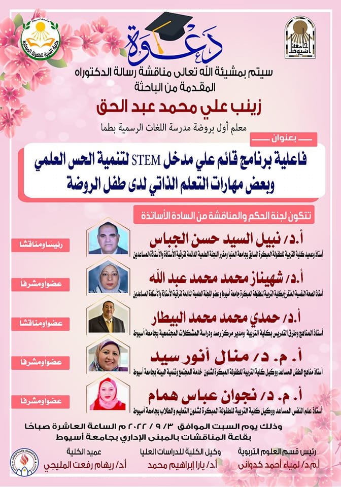 Will be held, God willing, the discussion of the doctoral thesis of the researcher / Zainab Ali Muhammad Abdul Haq