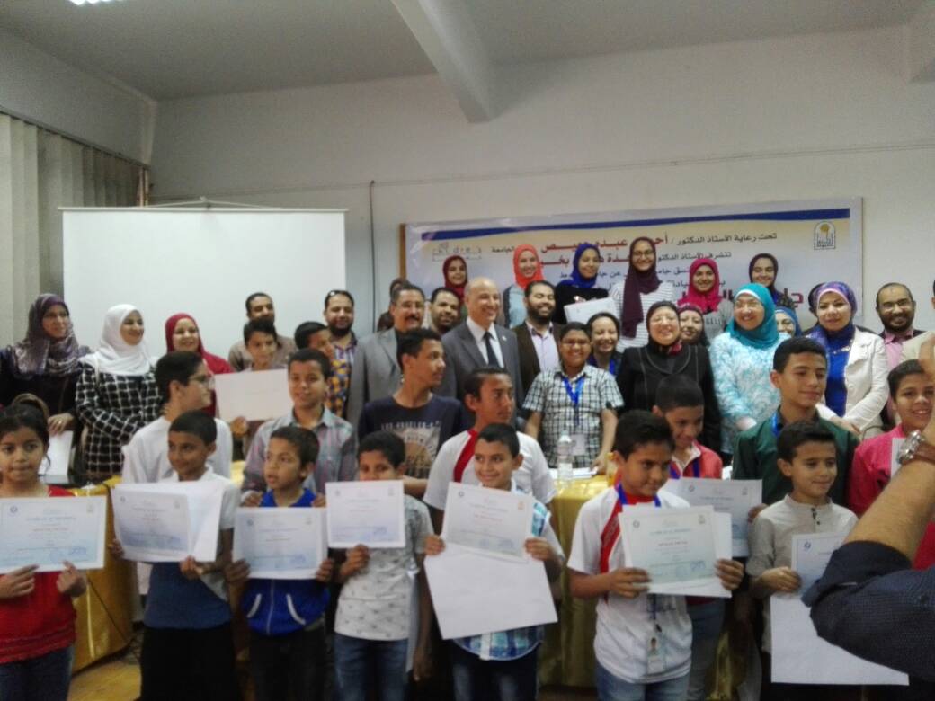 وقد تم تكريم علماء المستقبل( أطفال جامعة الطفل ) كما تم تكريم المدربين القائمين بالتدريب من السادة أعضاء هيئة التدريس و الهيئة المعاونة من كليات الجامعة المختلفة و كذلك تكريم لجان التنظيم و كل من ساهم فى فعاليات جامعة الطفل، و تم توزيع شهادات التقدير للجميع