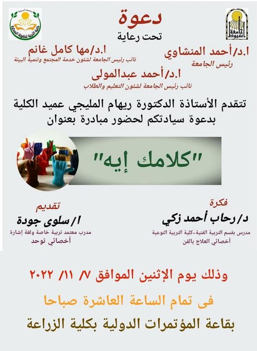 The Faculty of Early Childhood Education participated in the celebration of Assiut University and our green future (the closing ceremony) on Wednesday 30/11/2022 AD, with an environmental exhibition, and a number of college students in the march of Assiut University students, and a group of children’s shows for Smart City School and Integrated Care, in the presence of His Excellency the Dean The college, the vice deans, faculty members, the assistant staff, and the college students.