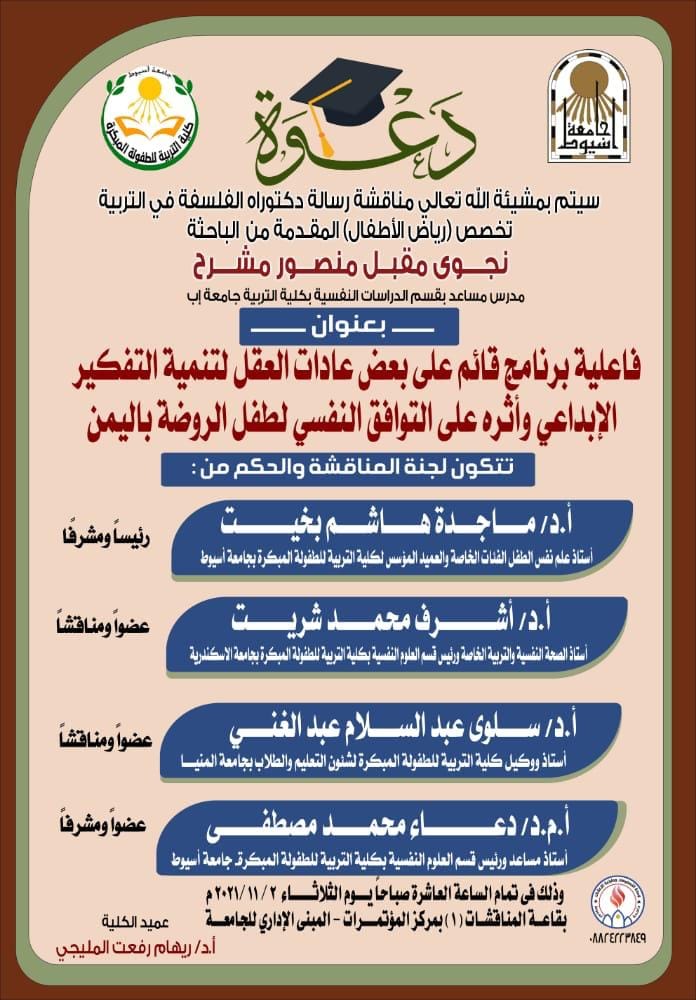 His Excellency congratulated Prof. Dr. Reham El-Meligy on the occasion of her assumption of the position of Dean of the Faculty of Early Childhood Education, Assiut University, in the presence of Prof. Yara Ibrahim, Vice Dean for Graduate Studies and Prof. Manal Anwar, Vice Dean for Community Service and Environmental Development, and during the meeting His Excellency the Representative stressed the need for the spirit of love and cordiality to prevail among all the faculty’s employees to advance the faculty. Prof. Dr. Reham Al-Meligy, Dean of the Faculty, expressed her sincere happiness with this precious visit and offered the highest thanks, appreciation and gratitude to His Excellency