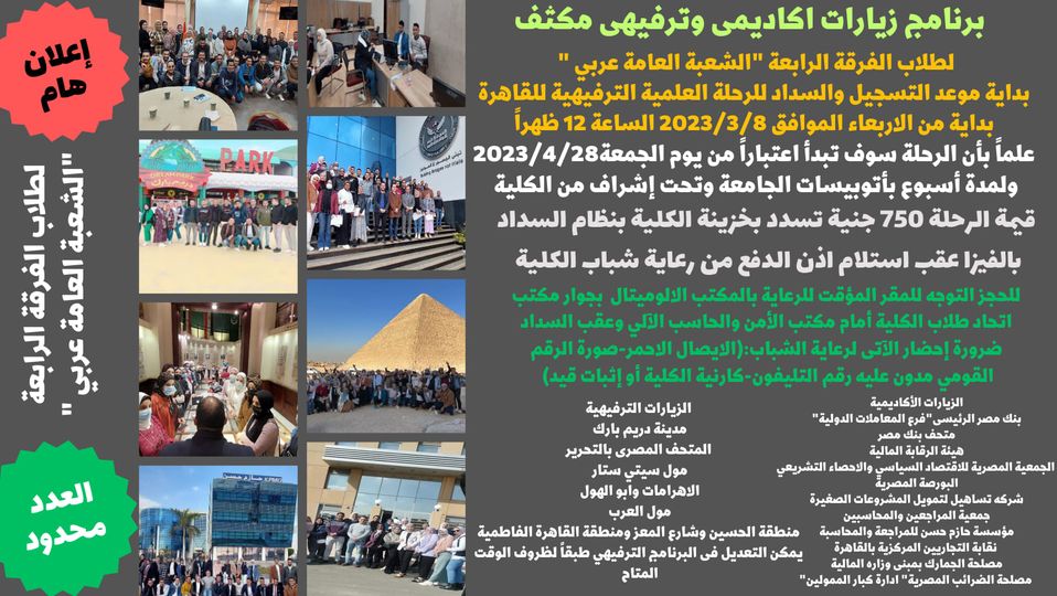اعلان هام جداً لطلاب الفرقة الرابعة الشعبة العامة عربي
