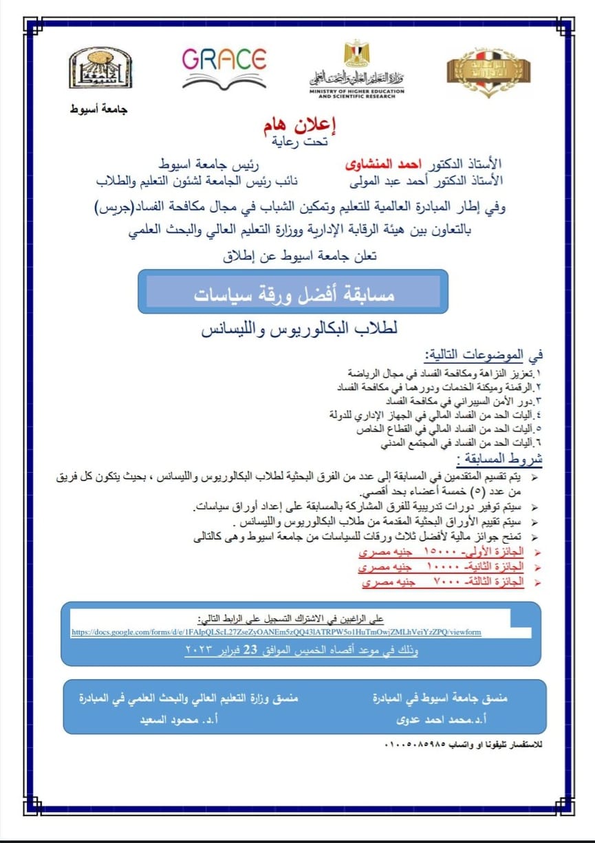إعلان هام لطلاب البكالوريوس و الليسانس 8 فبراير 2023 الرابط https://docs.google.com/.../1FAIpQLScL27ZseZyOAN.../viewform