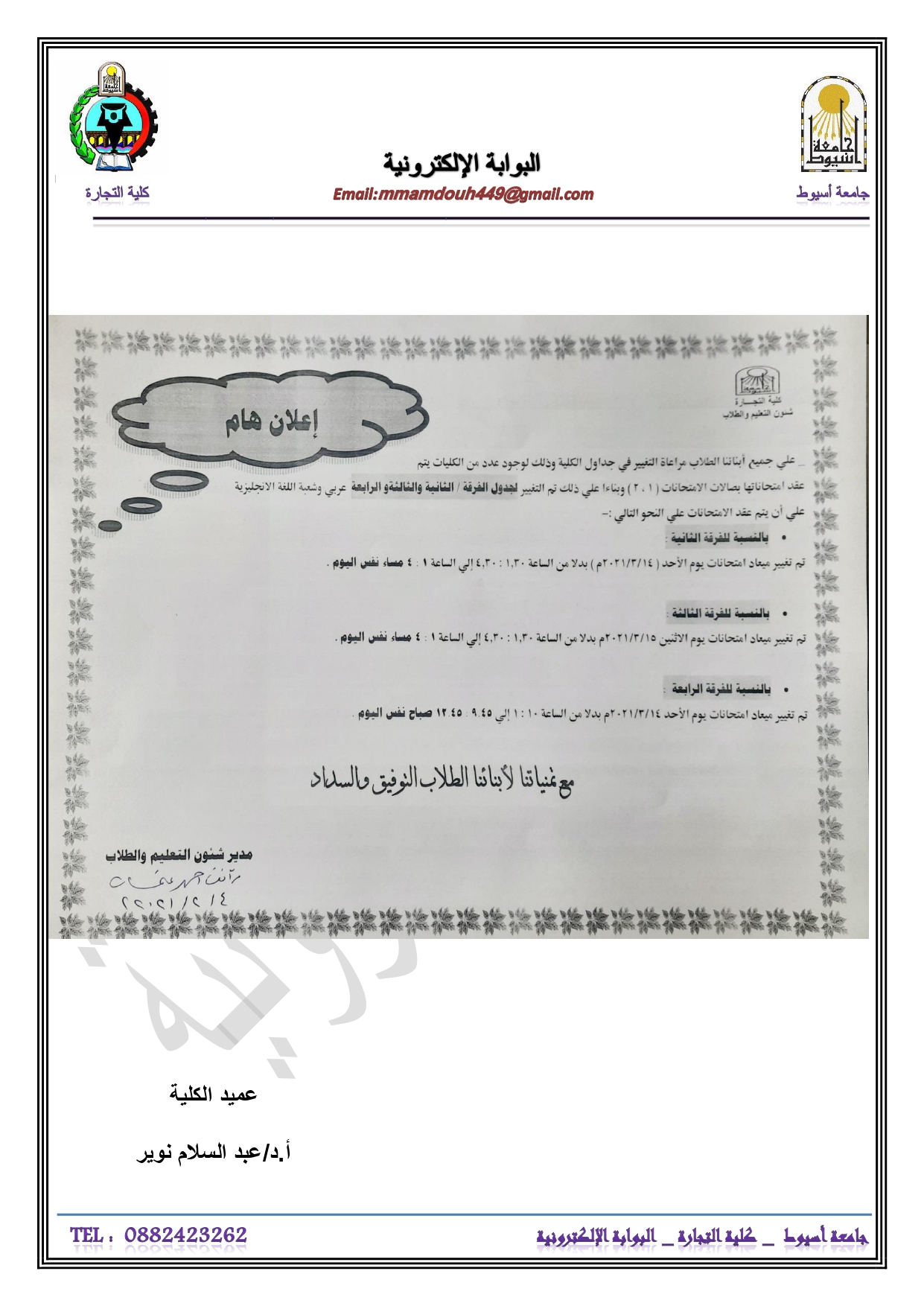 اعلان للطلاب بتغيير مواعيد الاماتحانات