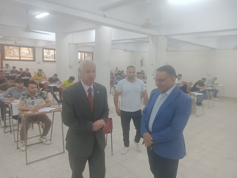 بجولة لمتابعة امتحانات الفصل الدراسي الثاني بالكلية لمتابعة سير الامتحانات والتأكد من توافر سبل الراحة الكافية لأداء الطلاب والطالبات للامتحانات.
