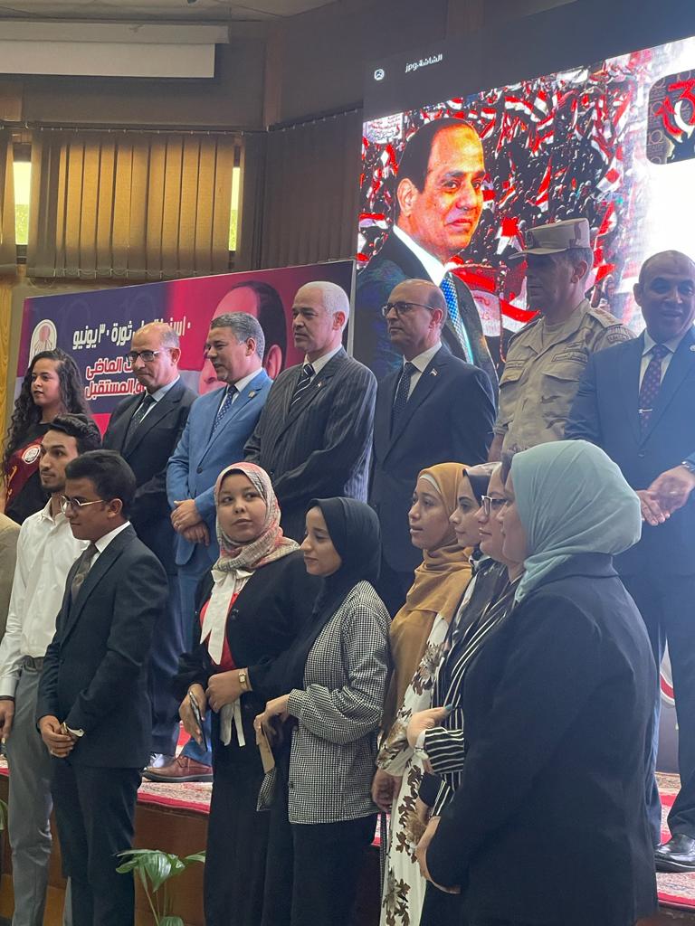 شاركت قيادات كلية التجارة ممثلة فى أ.د/ نسمة حشمت وكيل الكلية للدراسات العليا والبحوث، وأ.د. مروة بكر رئيس قسم العلوم السياسية ، والأستاذ /عبد القادر مهران أمين الكلية و إدارة رعاية الشباب بكلية التجارة ممثلة فى مديرها الأستاذ طارق شريت ومشرفو الأنشطة بالإدارة فى يوم ختام فاعليات ثورة 30 يونيو بجامعة اسيوط وذلك يوم الثلاثاء الموافق 1/8/2023 ، وذلك بإقامة معرض للوحات الطلاب والطالبات حول الثورة والانجازات التى حقققها.