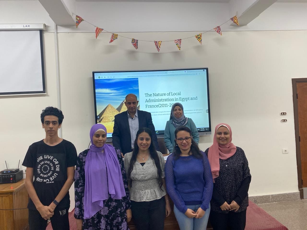 متابعة وكيل كلية التجارة لشئون التعليم والطلاب لعروض أبحاث طلاب وطالبات برنامج نظم معلومات السياسات العامة PPIS