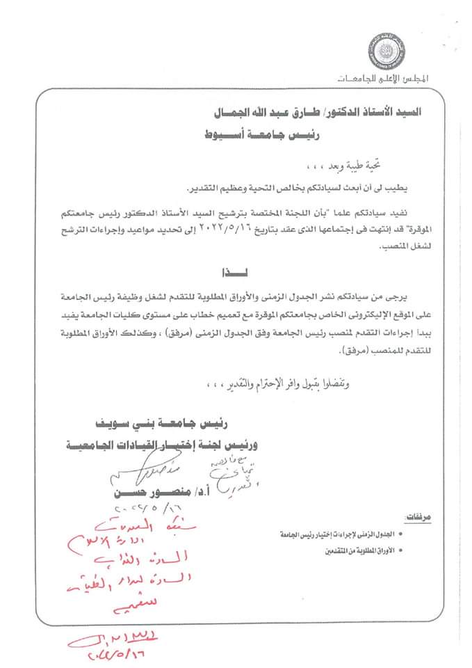 مواعيد و إجراءات الترشح لشغل منصب وظيفة رئيس الجامعة