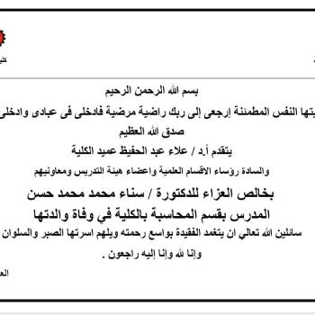 تتقدم أسرة كلية التجارة جامعة أسيوط ممثلة في معالي أ.د /علاء عبد الحفيظ عميد والسادة وكلاء الكلية ورؤساء الأقسام العلمية بالكلية والسادة أعضاء هيئة التدريس والعاملين بالكلية