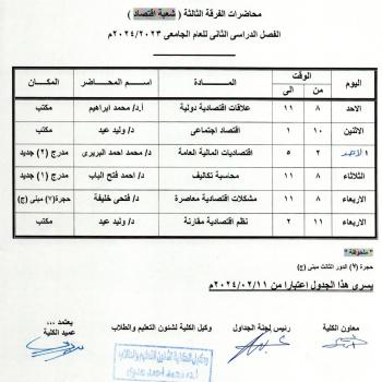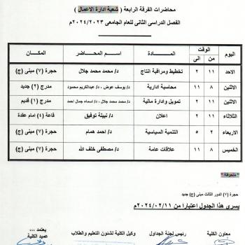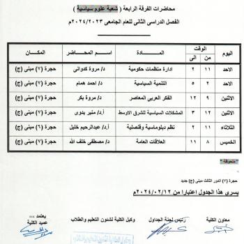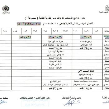 جدول برنامج الدراسة باللغة الإنجليزية
