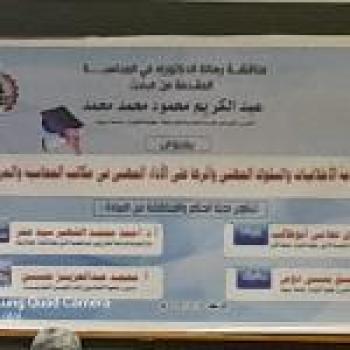 مناقشة رسالة الدكتوراه في المحاسبة الباحث / عبد الكريم محمود محمد المدرس المساعد بقسم المحاسبة بالكلية ، بحضور معالي أ.د/ علاء عبد الحفيظ عميد الكلية ولفيف من أعضاء هيئة…