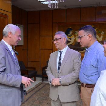 استقبال معالي أ.د / علاء عبد الحفيظ عميد الكلية لمعالي أ.د /أحمد عبد المولي نائب رئيس الجامعة لشئون التعليم والطلاب والسادة أعضاء هيئة التدريس بالجامعة و…