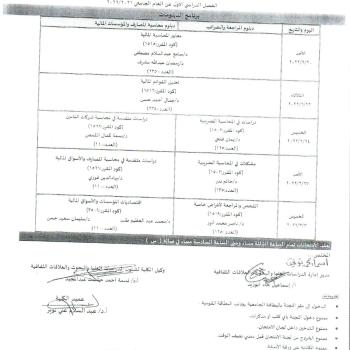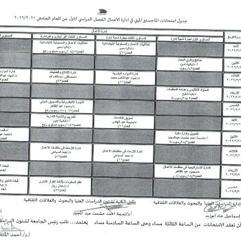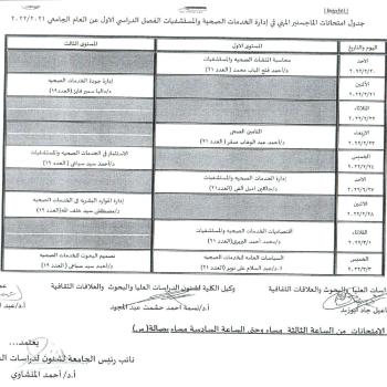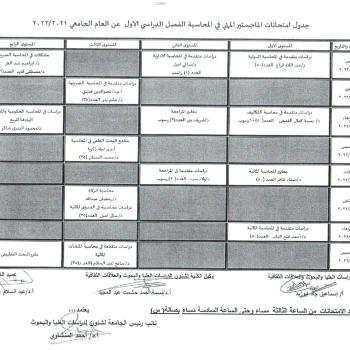 جدول إمتحانات الدراسات العليا -الفصل الدراسي الاول 2022/2021