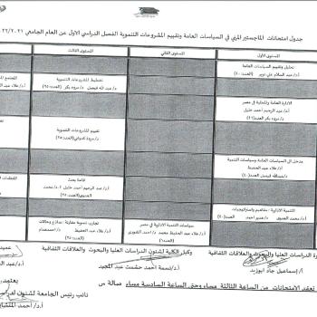 جدول إمتحانات الماجستير المهنى فى السياسات العامة و تقييم المشروعات الفصل الدراسي الاول 2022/2021