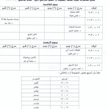 جدول محاضرات الفرقة الثانية (مجموعة د) الفصل الدراسي الأول 2020/2021
