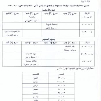 جدول محاضرات الفرقة الرابعة بالكامل - الفصل الدراسي الأول 2020/2021