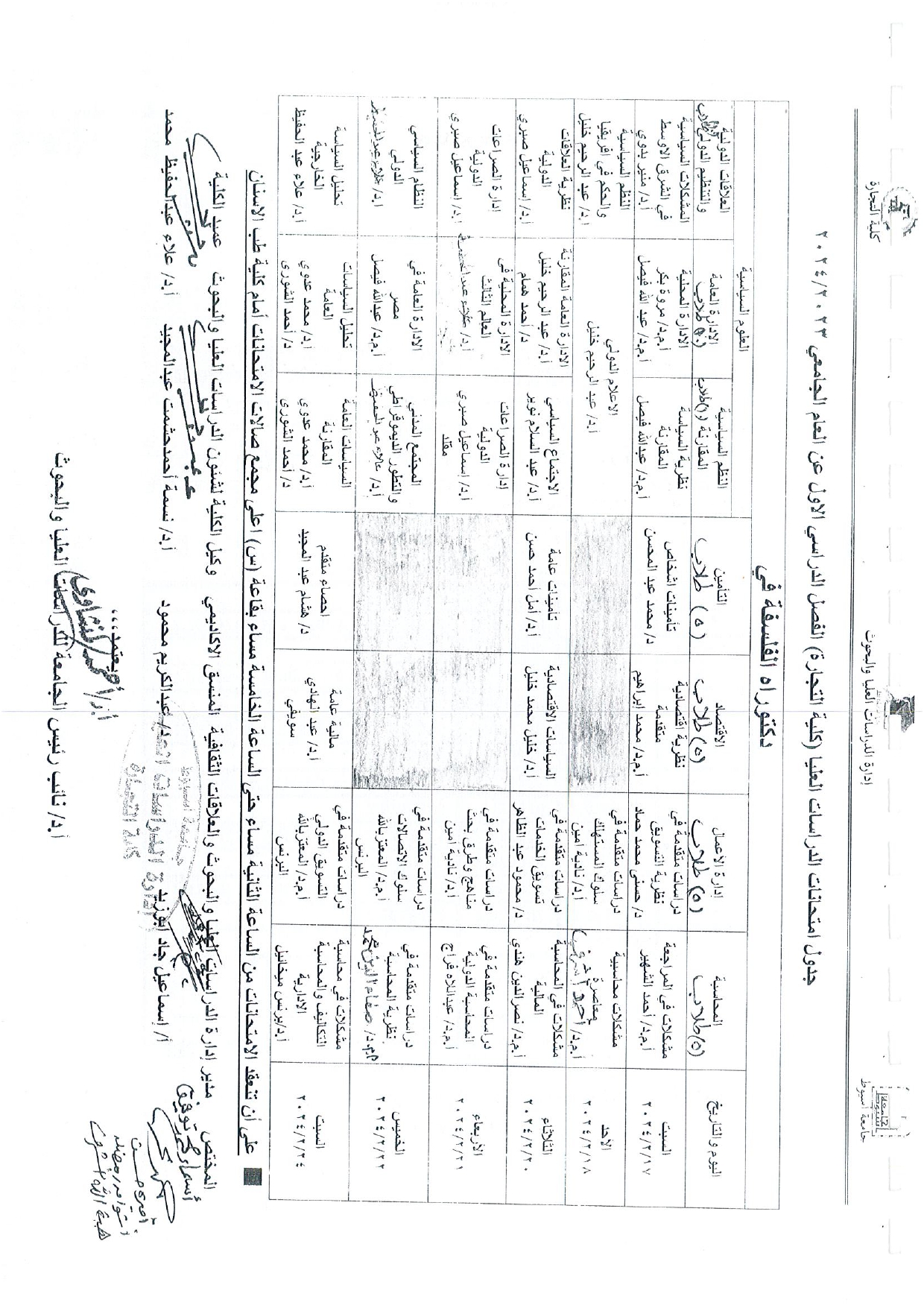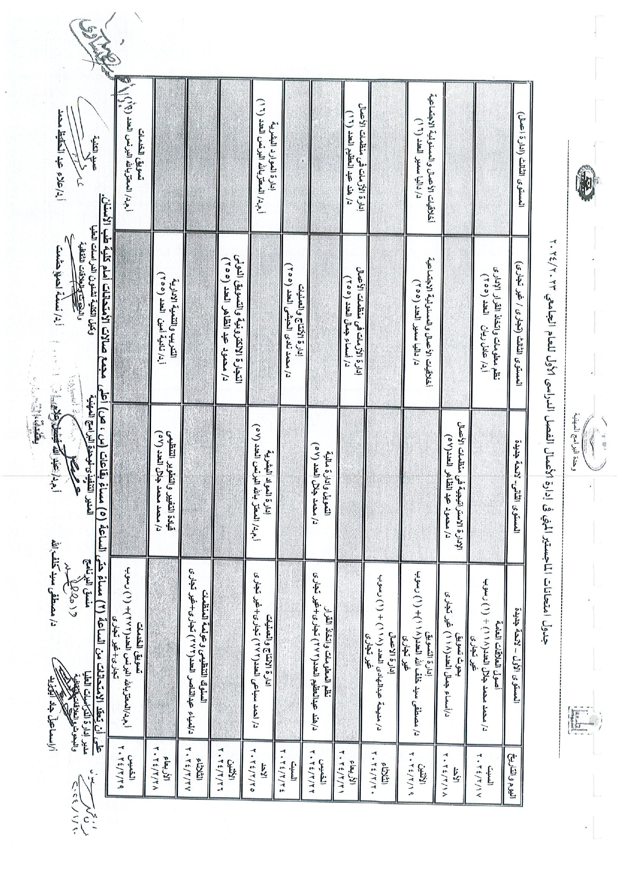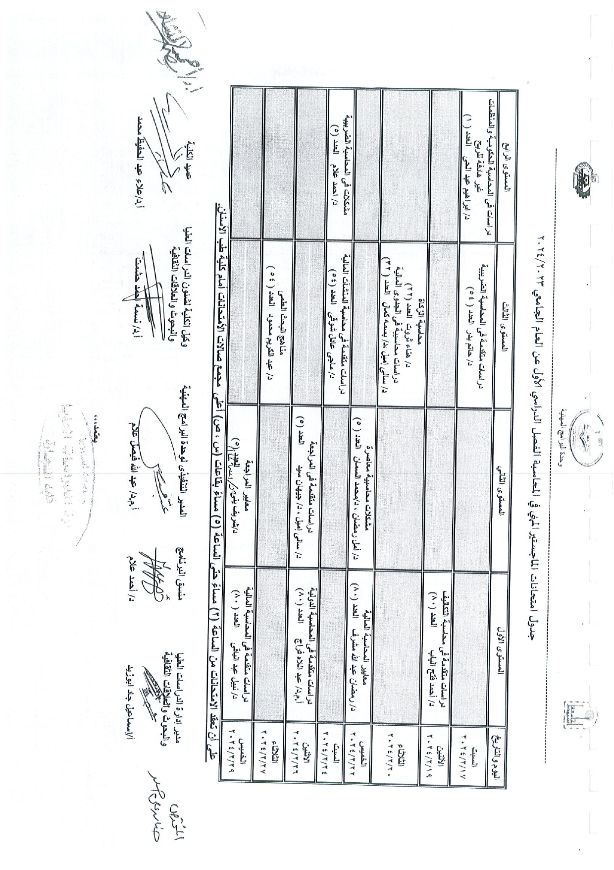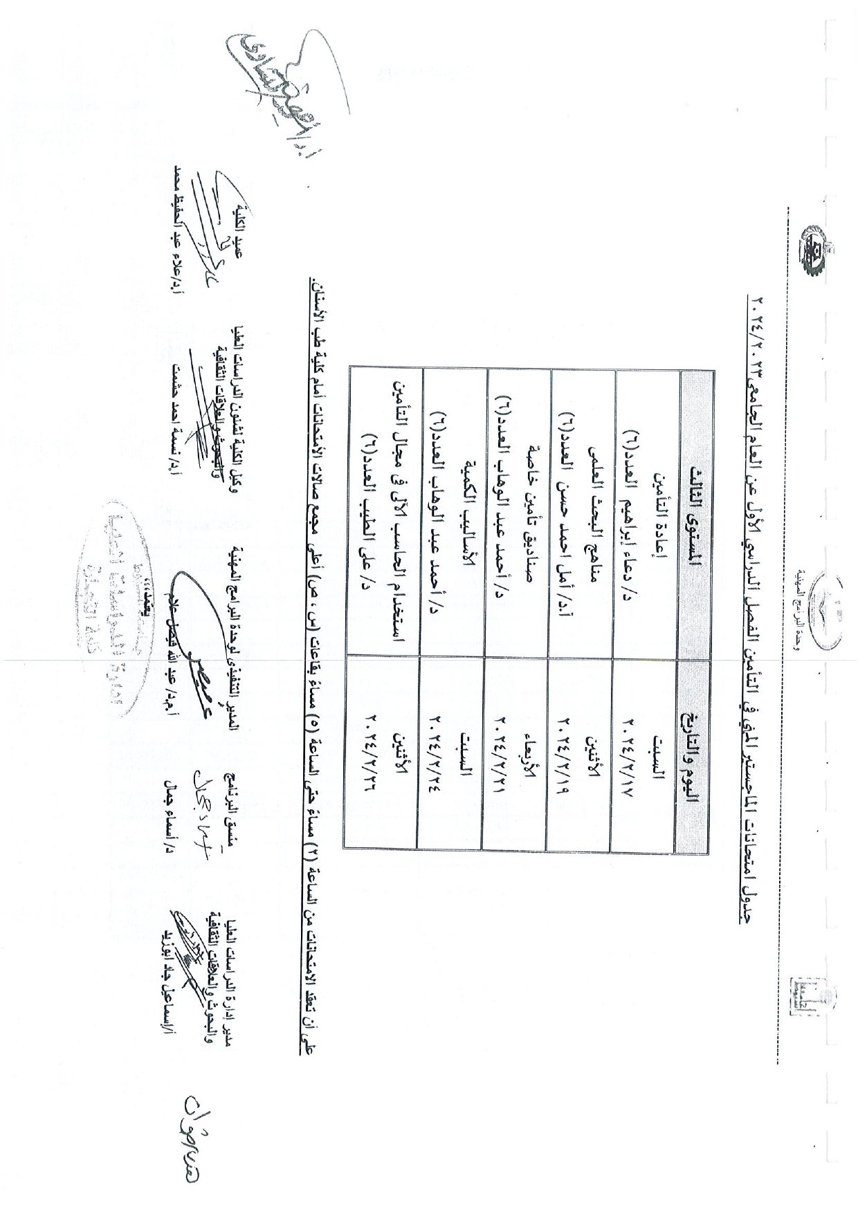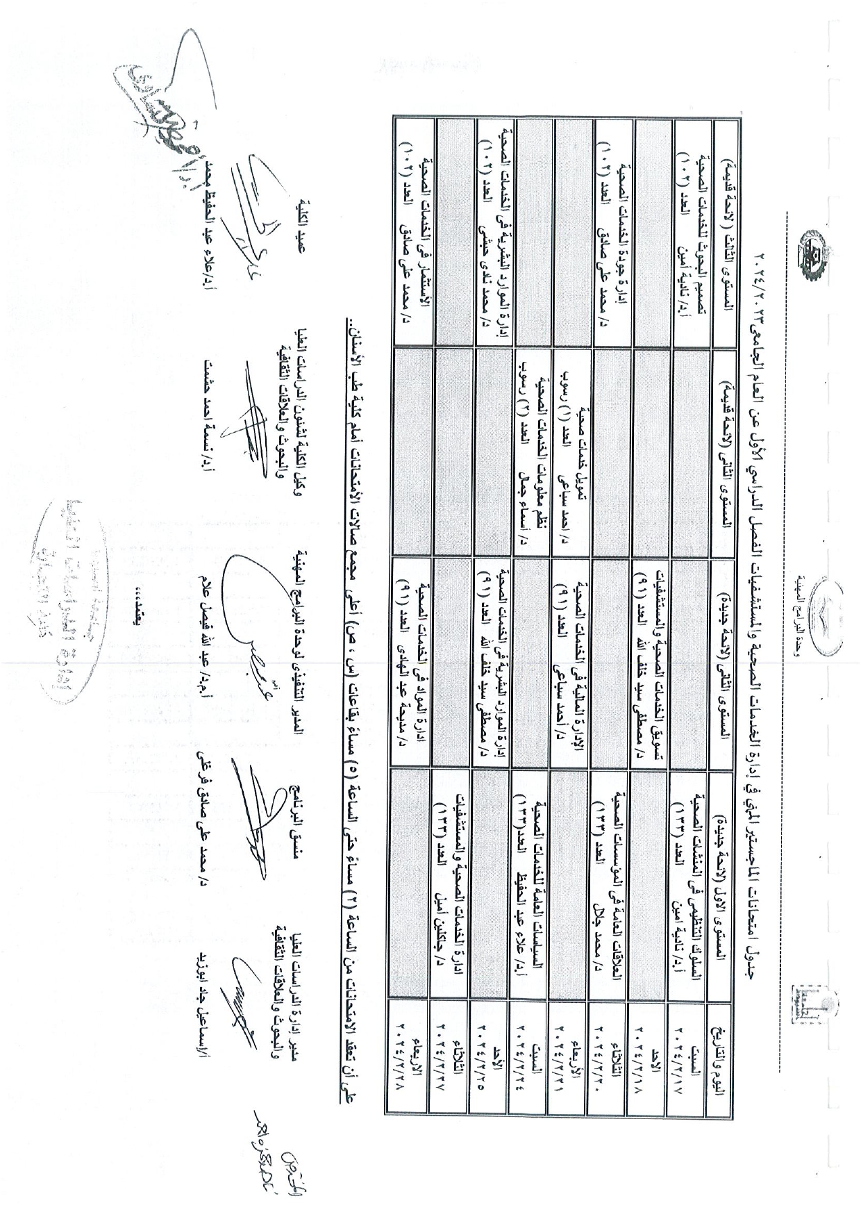 جدول امتحانات الدراسات العليا الفصل الدراسى الاول عن العام الجامعى 2023/2024