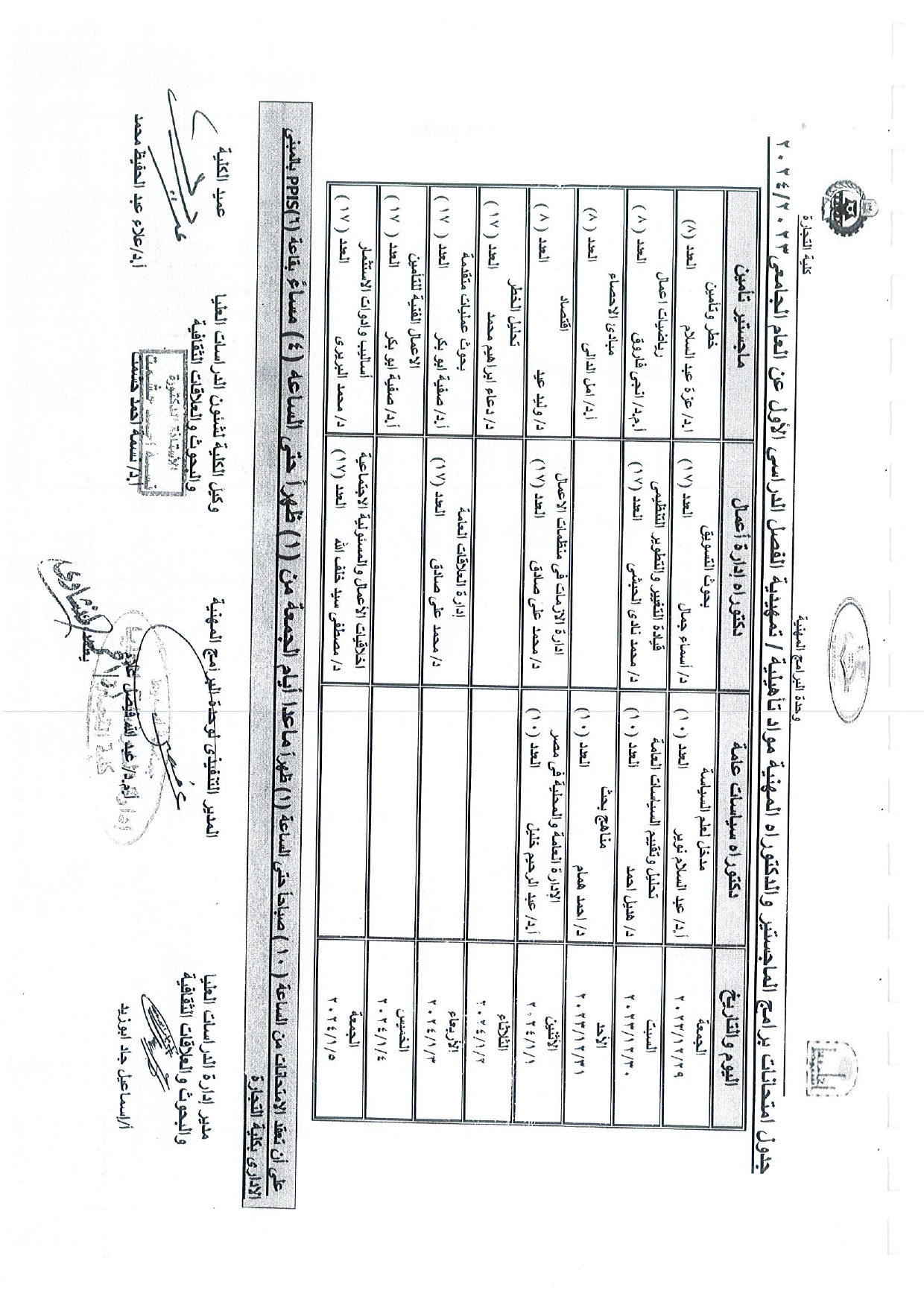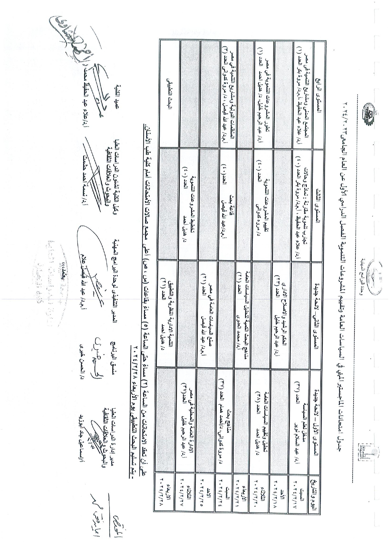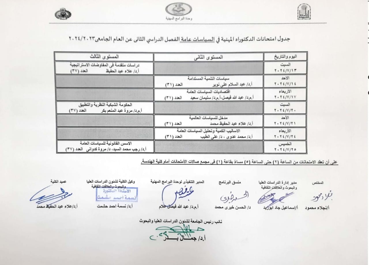 جدول امتحانات الدكتوراه المهنية فى السياسات العامة