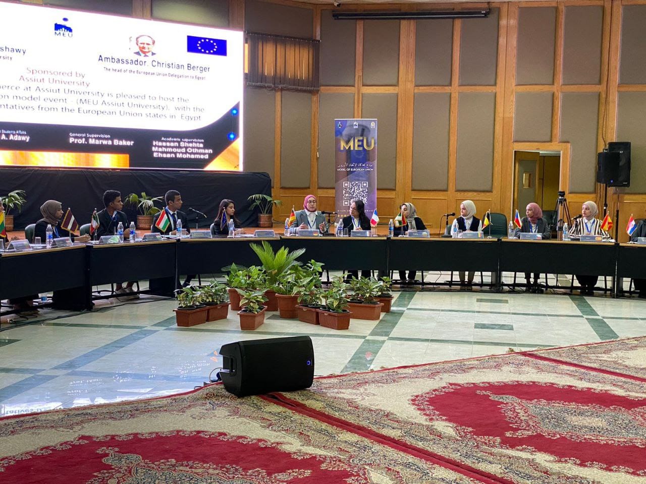 في ظل توجيهات رئيس جامعة أسيوط الأستاذ الدكتور أحمد المنشاوي توجه عدد من طلاب وطالبات برنامج نظم معلومات السياسات العامة PPIS نخبة الجامعة الواعدة ليكونوا في مقدمة صفوف الإستقبال المشرف لمحافظ أسيوط ولرئيس وفد الاتحاد الأوروبي في مصر و١٤ سفير من سفراء الاتحاد الأوروبي في مصر وزوجاتهم، هذا بالإضافة لتمثيلهم في المؤتمر الختامي للنموذج وورش العمل النقاشية التي أقامها وفد الاتحاد الأوروبي مع طلاب وطالبات البرنامج داخل المبنى الإداري للجامعة.