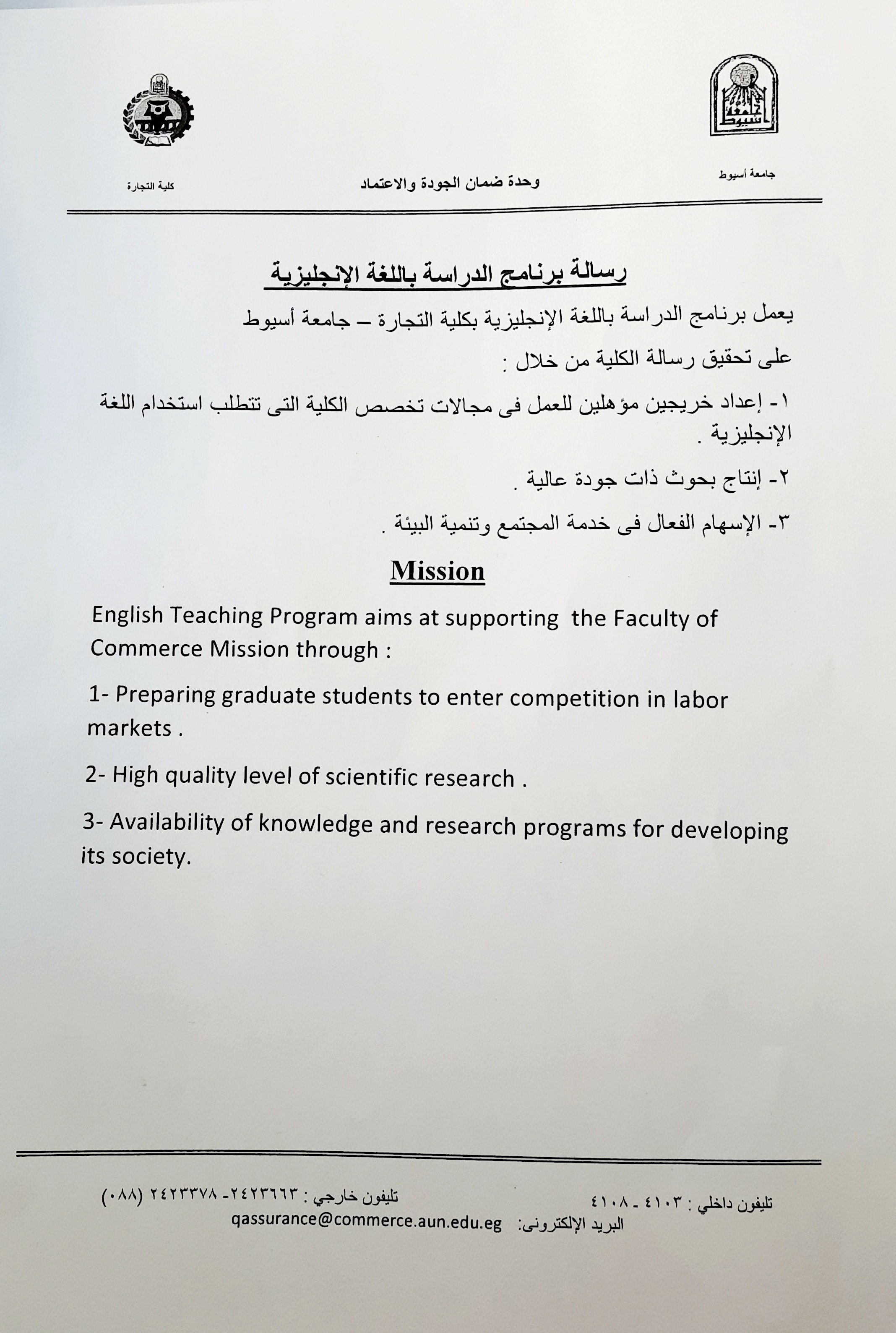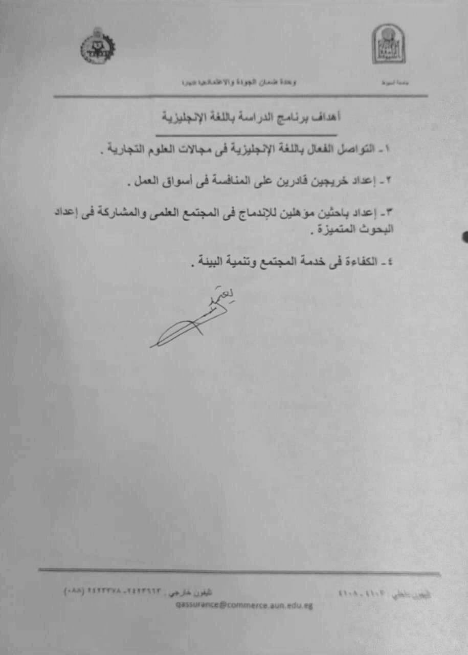 أهداف برنامج الدراسة باللغة الإنجليزية