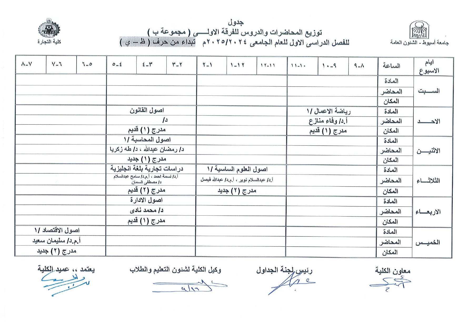 جدول محاضرات الفرقة الأولى مجموعة (ب)