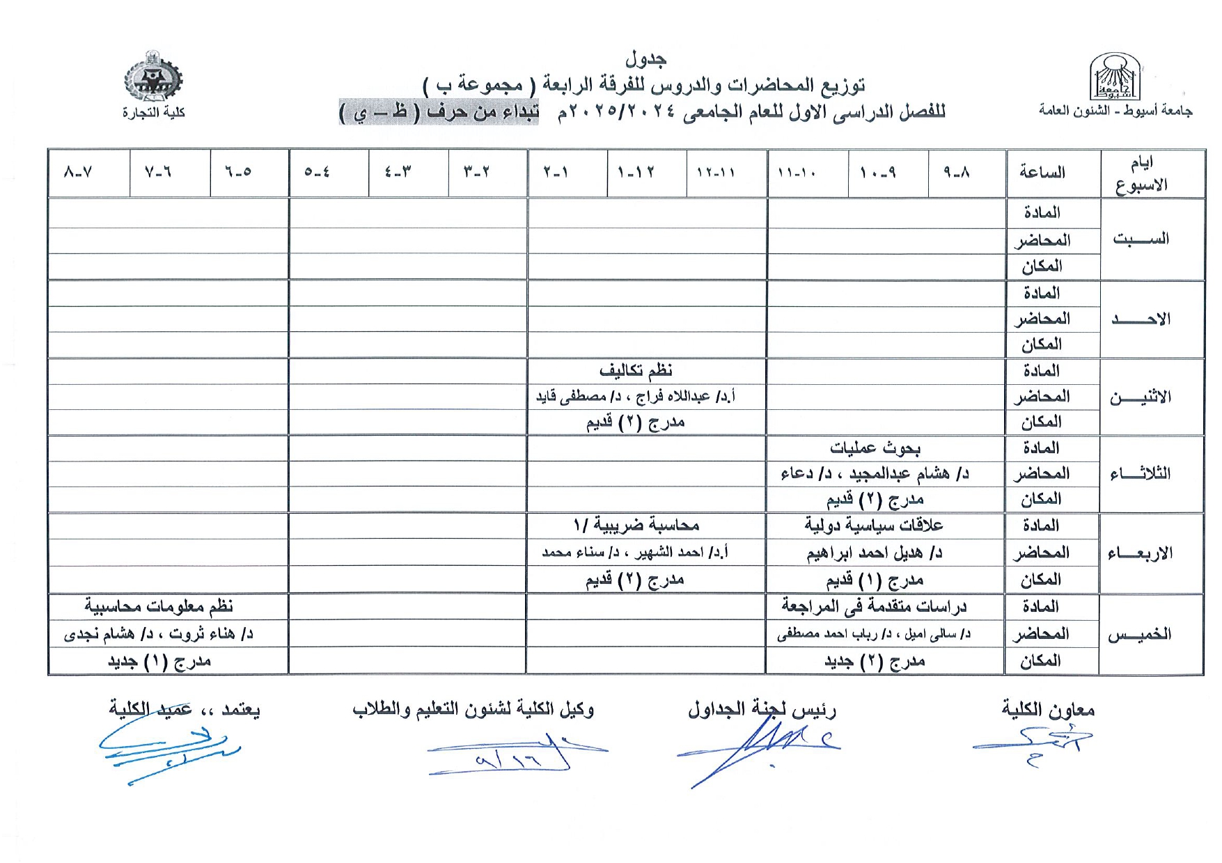 جدول محاضرات االفرقة الرابعة مجموعة (ب)