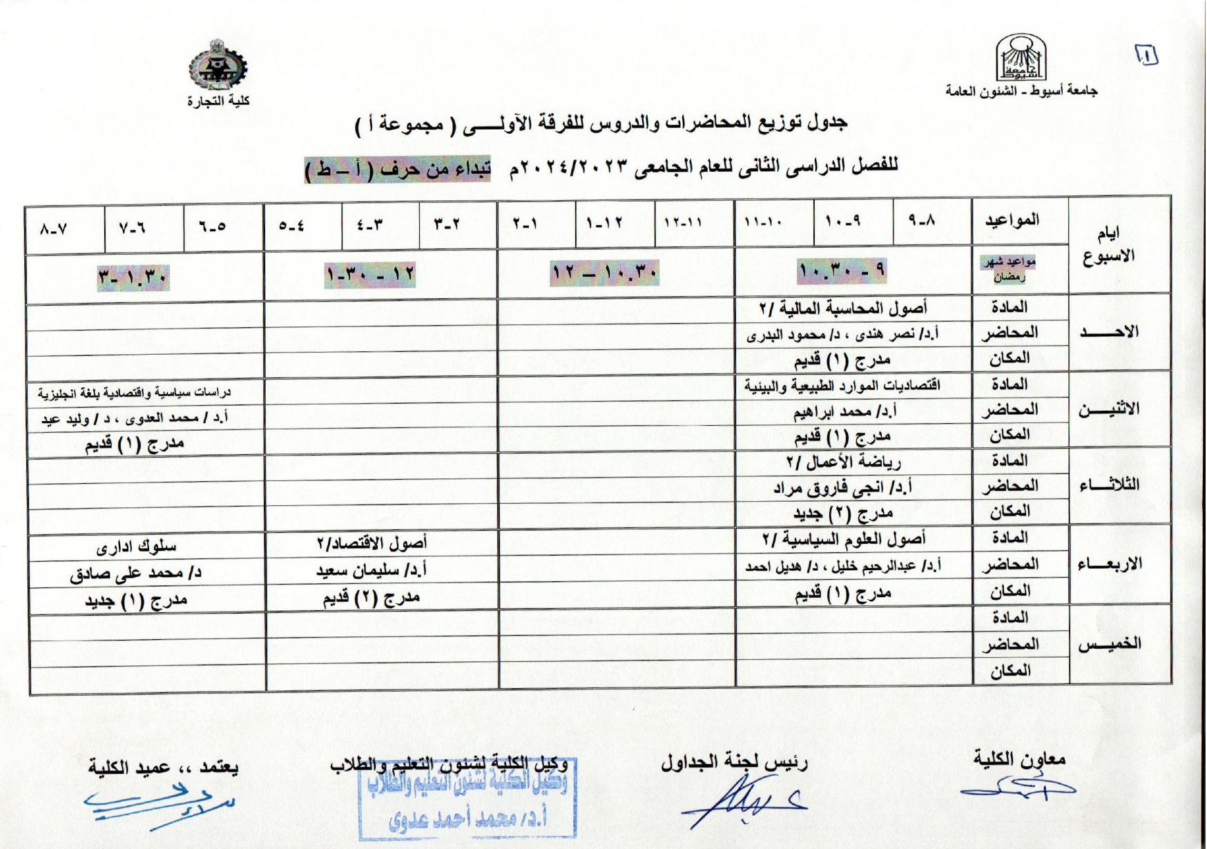 Distribution schedule of lectures and lessons for the first year (Group A) for the second semester of the academic year 2023/2024 6 February 2024