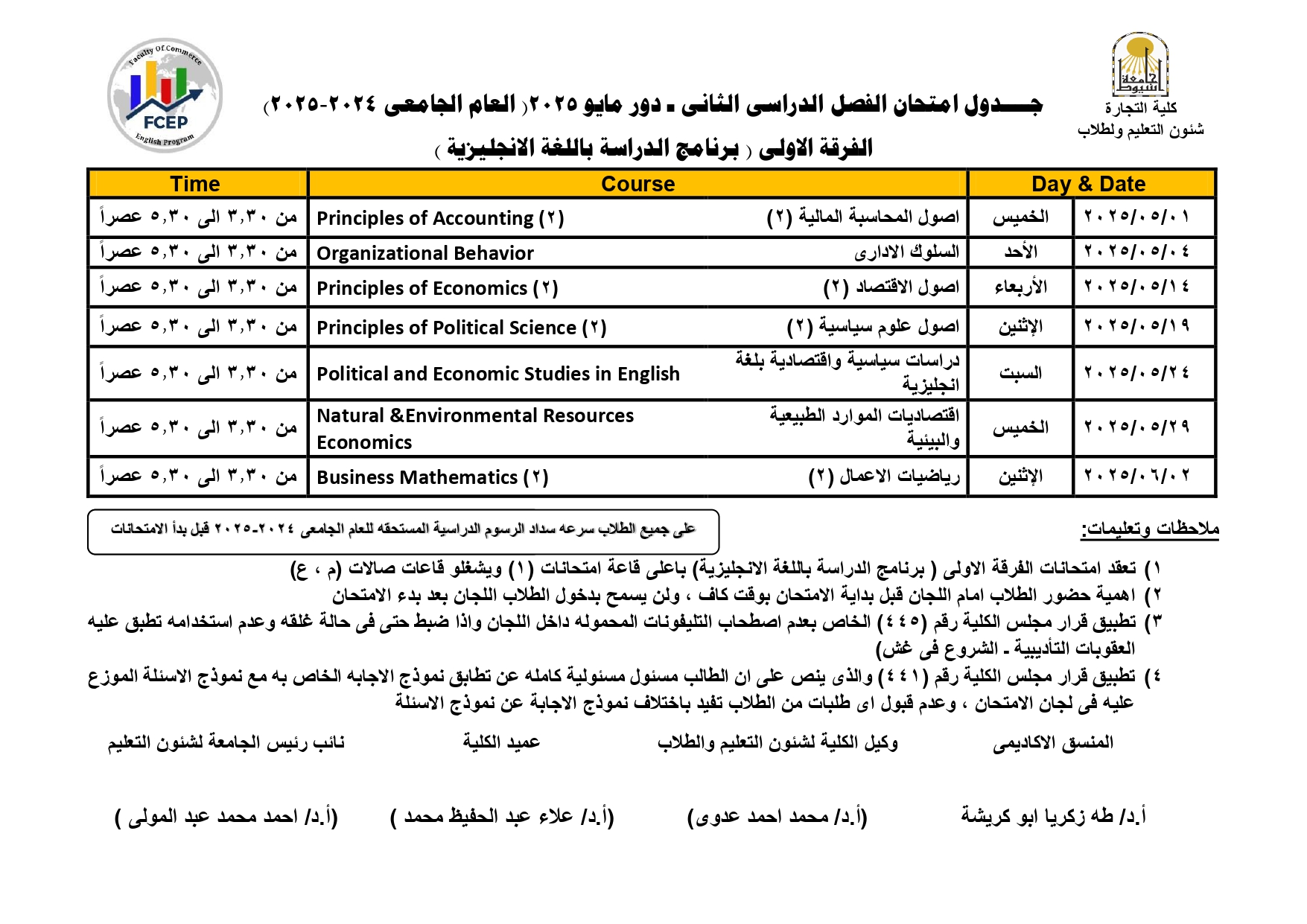 Exam schedule for second semester - May 2025, first year (study program in English)