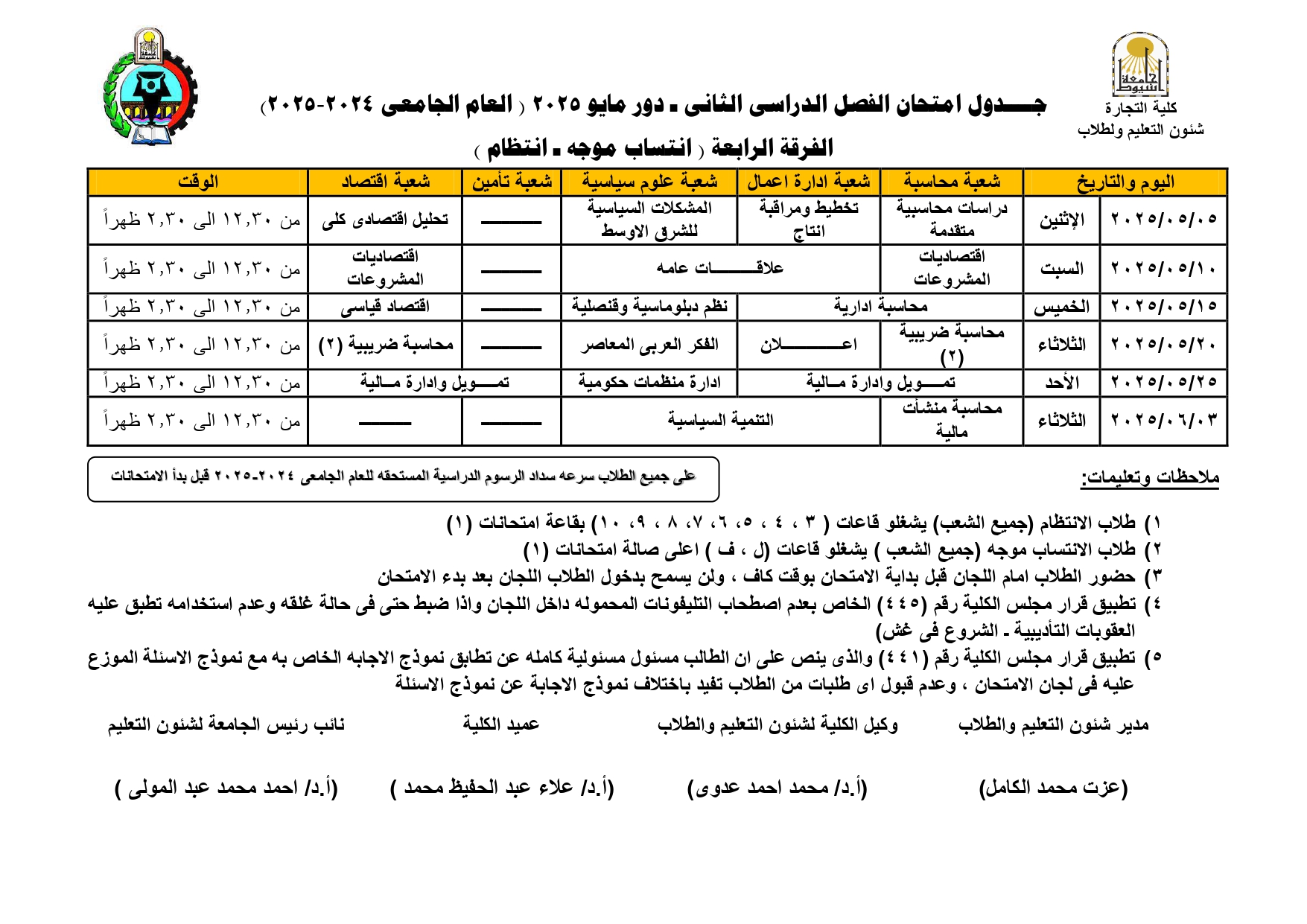 Exam schedule for second semester - May 2025, fourth year (regularity - directed affiliation) 14 July 2025
