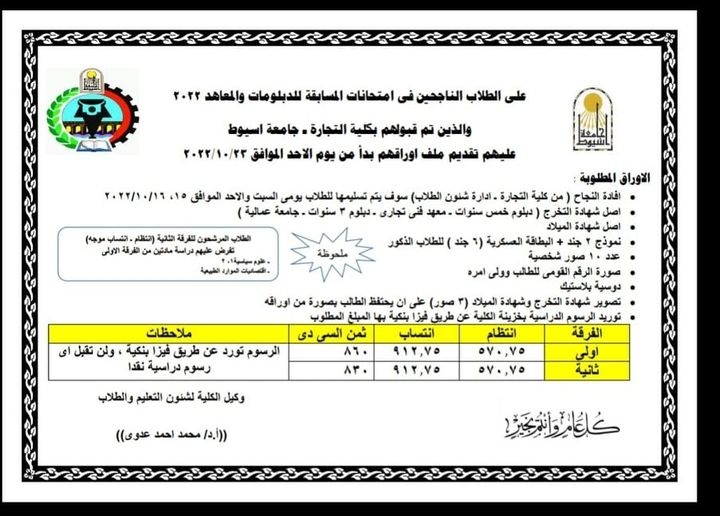 كلية التجارة جامعة اسيوط