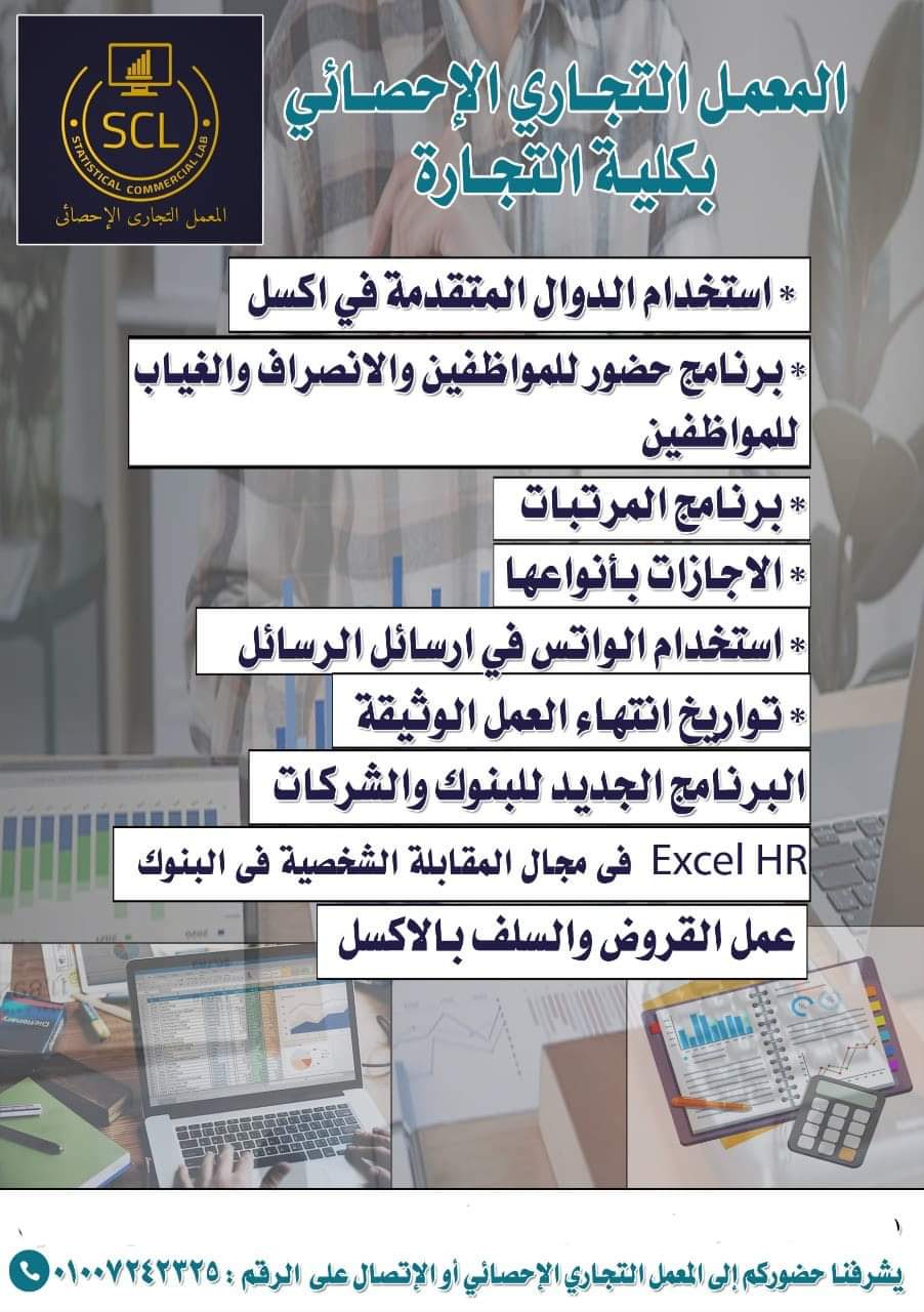 دورات المعمل التجارى الإحصائى بكلية التجارة 25 يوليو 2022 الآن بمركز الحاسب الآلي بكلية التجارة ?? أقوى الدورات المؤهلة للعمل في البنوك و الشركات ?? للحجز والاستفسار يرجى التوجه إلى مركز الحاسب الآلي بالكلية أو الاتصال علي : ٠١٠٠٧٢٤٢٣٢٥ ?