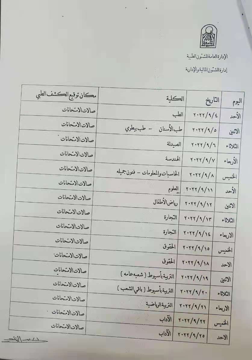 مواعيد الكشف الطبي للطلاب الجدد (انتظام) للعام الدراسي 2022-2023