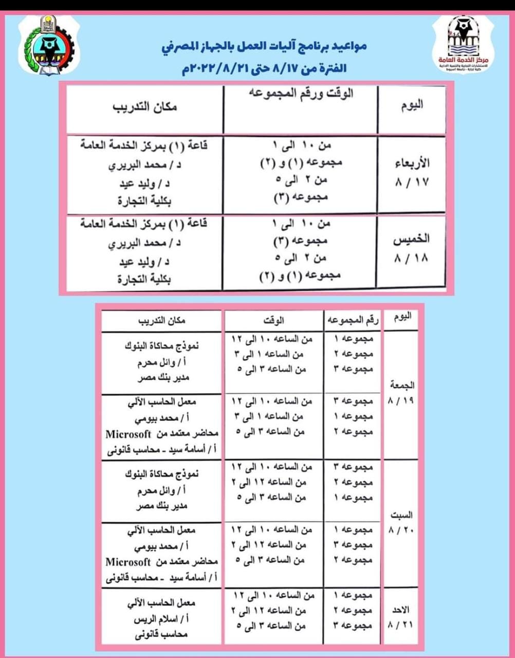 مواعيد برنامج اَليات العمل بالجهاز المصرفى