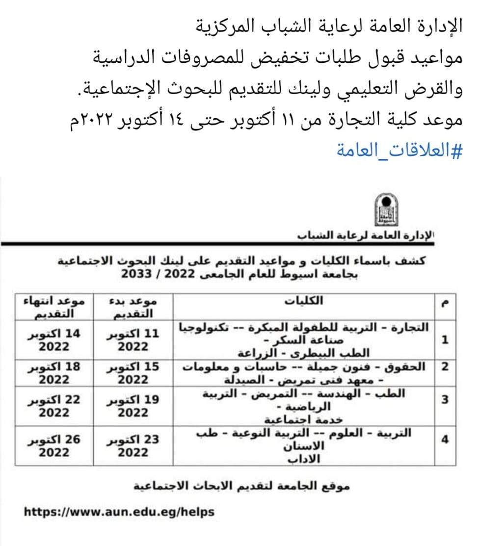 رابط وموعد التقديم على للبحوث الإجتماعية. الإدارة العامة لرعاية الشباب المركزية.