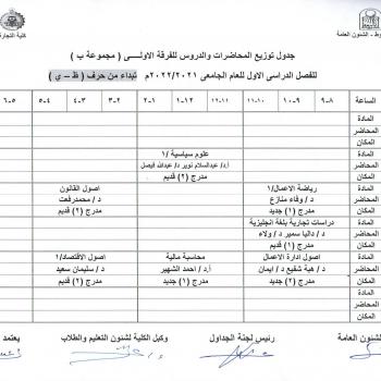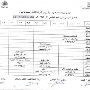 Lecture distribution schedule for group 2 Group B