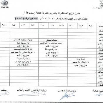 Lecture distribution schedule for the third group Group A