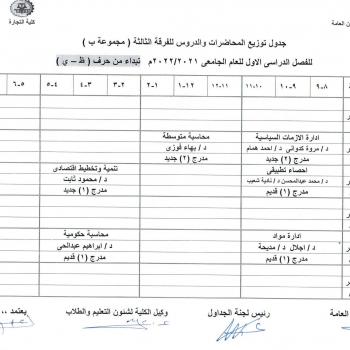Table distribution of lectures for the third group Group B